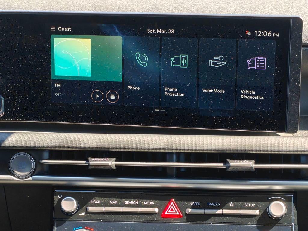 - Radio: AM/FM/HD Audio System -inc: 12.3" color touchscreen display, 6 speakers, SiriusXM satellite radio system (3-month trial subscription), wireless Apple CarPlay and Android Auto integration, controller OTA update capability, Blue Link connected car system and USB connectivity