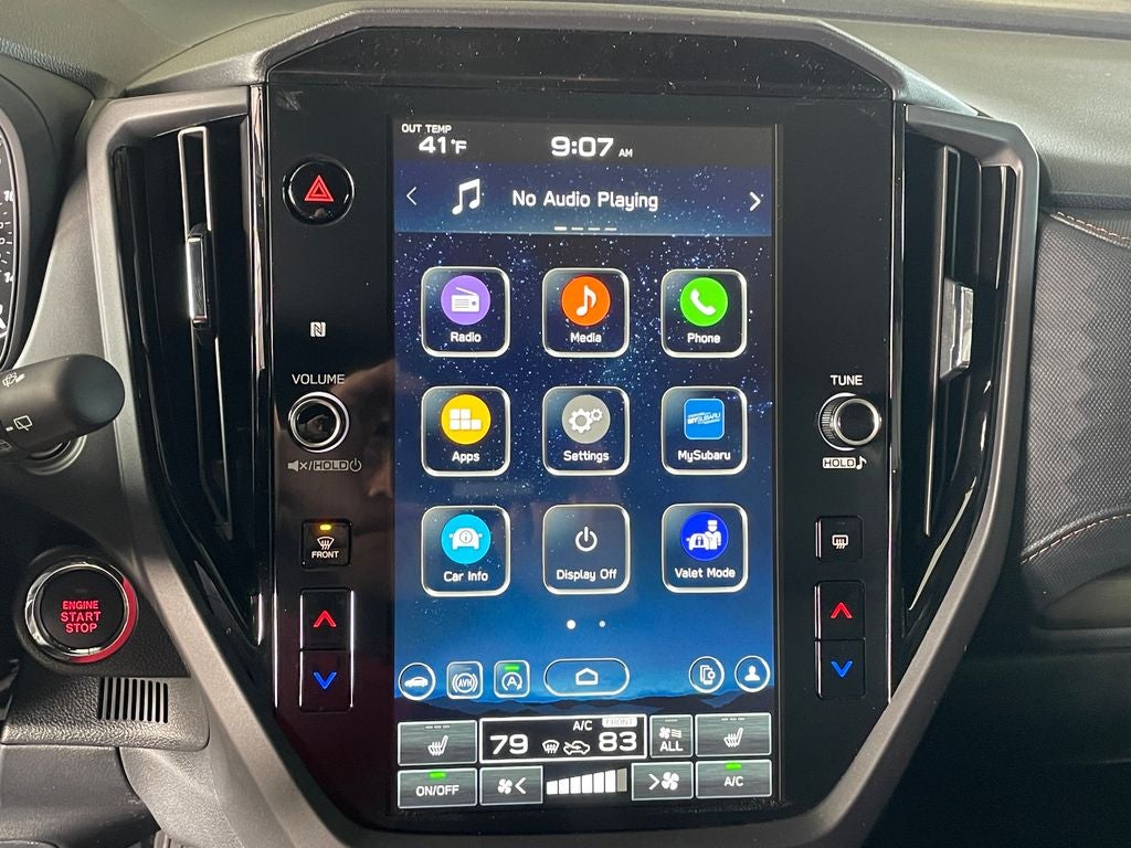 - Radio: Subaru 11.6" Multimedia Plus System -inc: valet mode, integrated center information display, AM/FM stereo HD Radio, multi-touch gesture high resolution display screen, voice activated controls, Bluetooth® audio streaming and hands-free phone connectivity w/SMS text messaging (refer to Subaru.com for cellphone compatibility), iPod control capability, smartphone integration: Android Auto and Apple CarPlay w/full screen view and wireless connection, SiriusXM satellite radio w/360L (free 4-month trial subscription included), USB and Over The Air (OTA) audio system update, steering wheel controls, 6 speakers, 3.5mm auxiliary input jack and roof mounted audio and satellite antenna