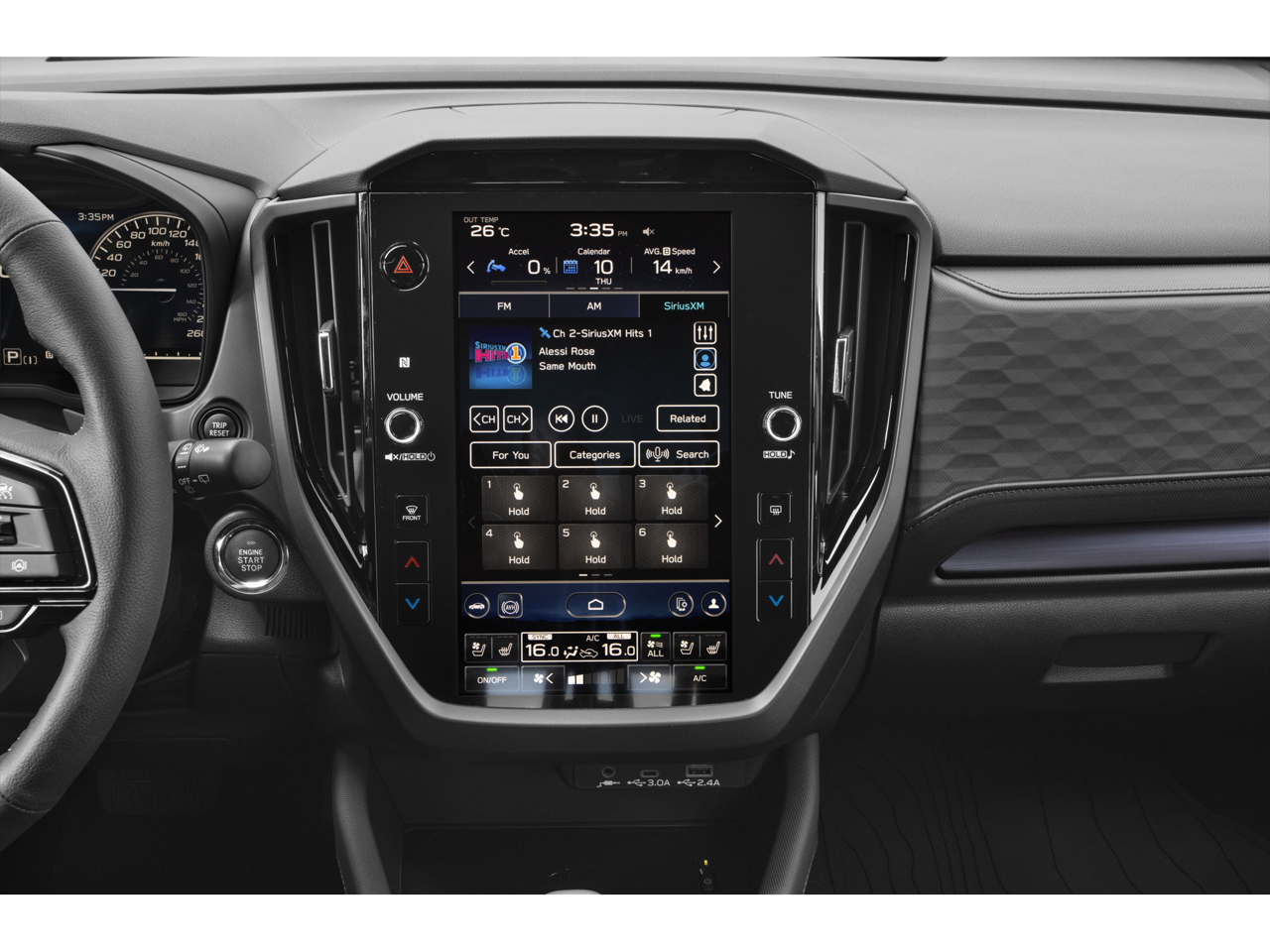 - Radio: Subaru 11.6" Multimedia Navigation System -inc: valet mode, integrated center information display, AM/FM stereo HD Radio, multi-touch gesture high resolution display screen, voice activated controls, voice activated navigation, Bluetooth® audio streaming and hands-free phone connectivity w/SMS text messaging (refer to Subaru.com for cellphone compatibility), TomTom navigation software w/what3words, iPod control capability, smartphone integration: Android Auto and Apple CarPlay w/full screen view and wireless connection, SiriusXM satellite radio w/360L (free 4-month trial subscription included), USB and Over The Air (OTA) audio system update, USB and Map Over The Air (MOTA) TomTom navigation system update (3 years free map updates), steering wheel controls, harman/kardon speaker system w/11 speakers and 576 watt equivalent maximum output amplifier, 3.5mm auxiliary input jack and roof mounted audio, satellite antenna and SiriusXM Travel Link (4 months free trial included/subscription required after)